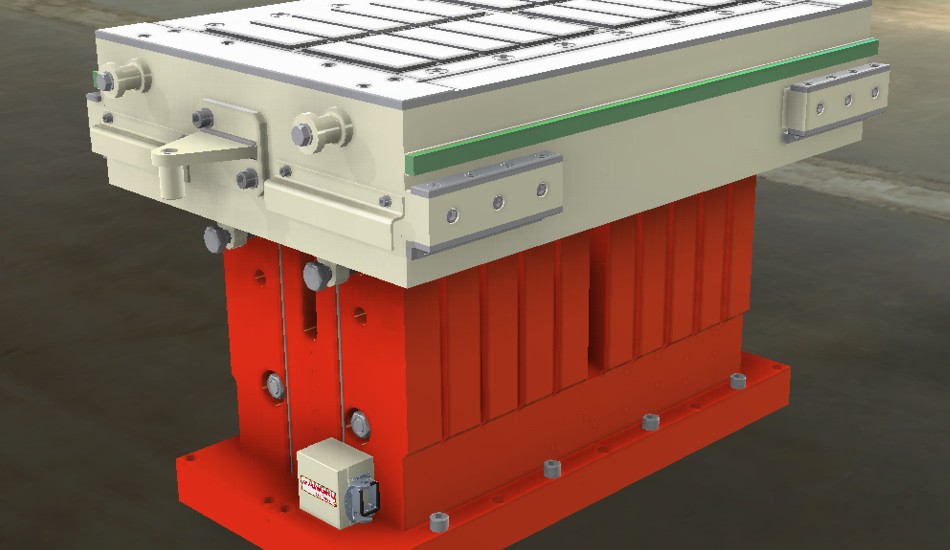 Servomotorisch angetriebene Spindelpresse mit einer Presskraft von 6.000 kN zur Herstellung von Kalksandsteinen im Doppeldruck-Verfahren.