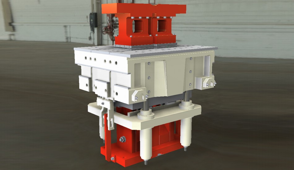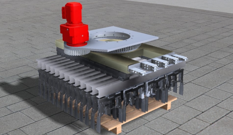 Prasa dwustronnego prasowania do produkcji cegły silikatowej, o max. sile nacisku 6.000 kN napądzana serwo-śrubami.
